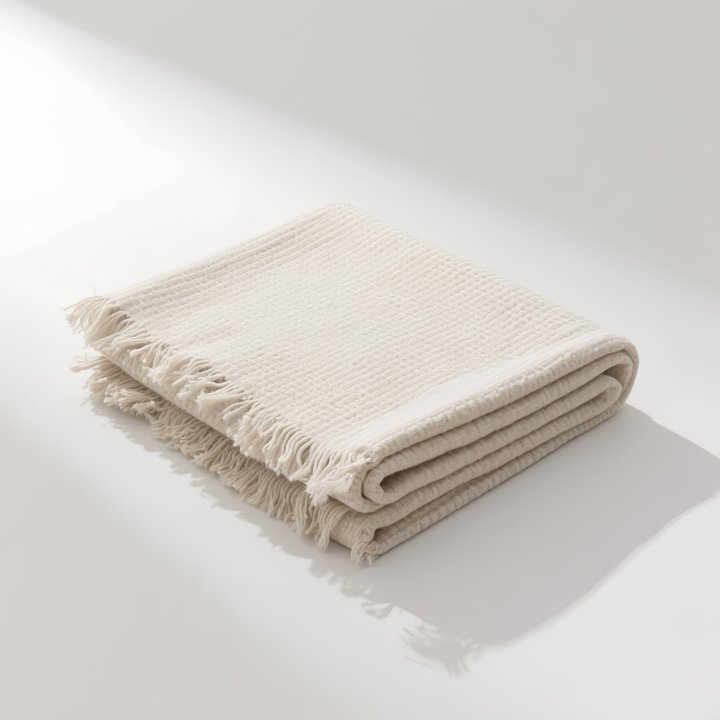 Krémově barevný chenille přehoz na pohovku v ins stylu